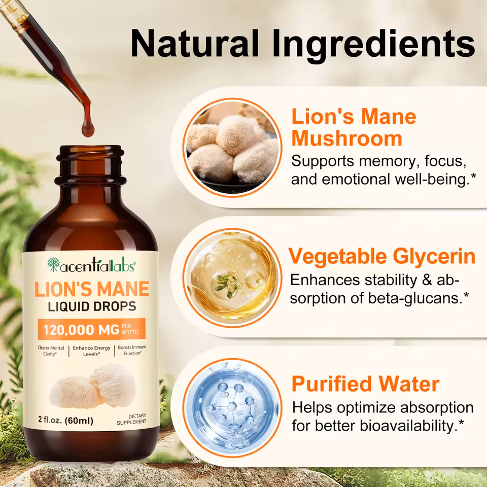 🍄 Extract lichid de coamă de leu – Putere a creierului, concentrare și susținere a nervilor în fiecare picătură