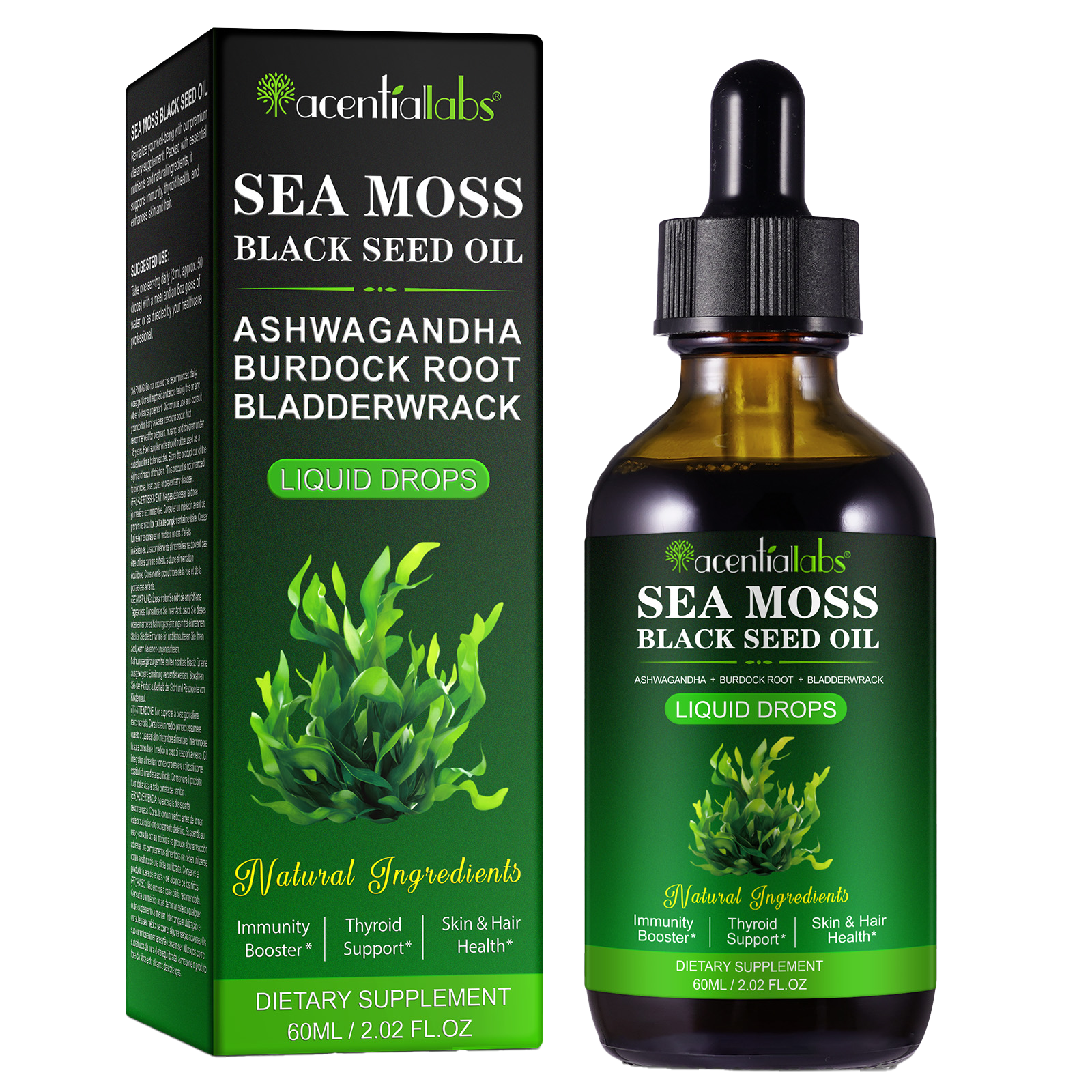 Obțineți susținere completă a corpului cu picăturile lichide de mușchi de mare – un amestec concentrat de mușchi de mare irlandez, ulei de semințe de nigeră, rădăcină de brusture, albus și ashwagandha . Concepute pentru a susține sănătatea tiroidei, imunitatea, digestia, pielea și energia zilnică într-o formă lichidă cu absorbție rapidă.